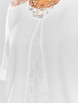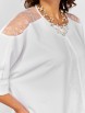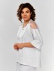Блузка с круглой горловиной, цельнокроеным рукавом летучая мышь и фигурным низом. Рукав ¾ с отложной манжетой. В центральной части полочки клин из отделочной ткани. От горловины круглый подрез, переходящий в фигурную кокетку по спинке из отделочной ткани.