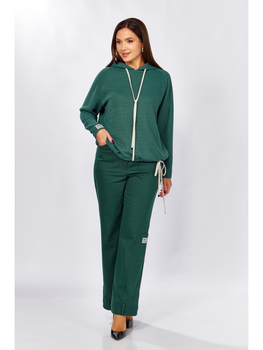 Стильный комплект изумрудного цвета, согреет вас в прохладную осеннюю погоду на прогулке, и не оставит без внимания на работе.