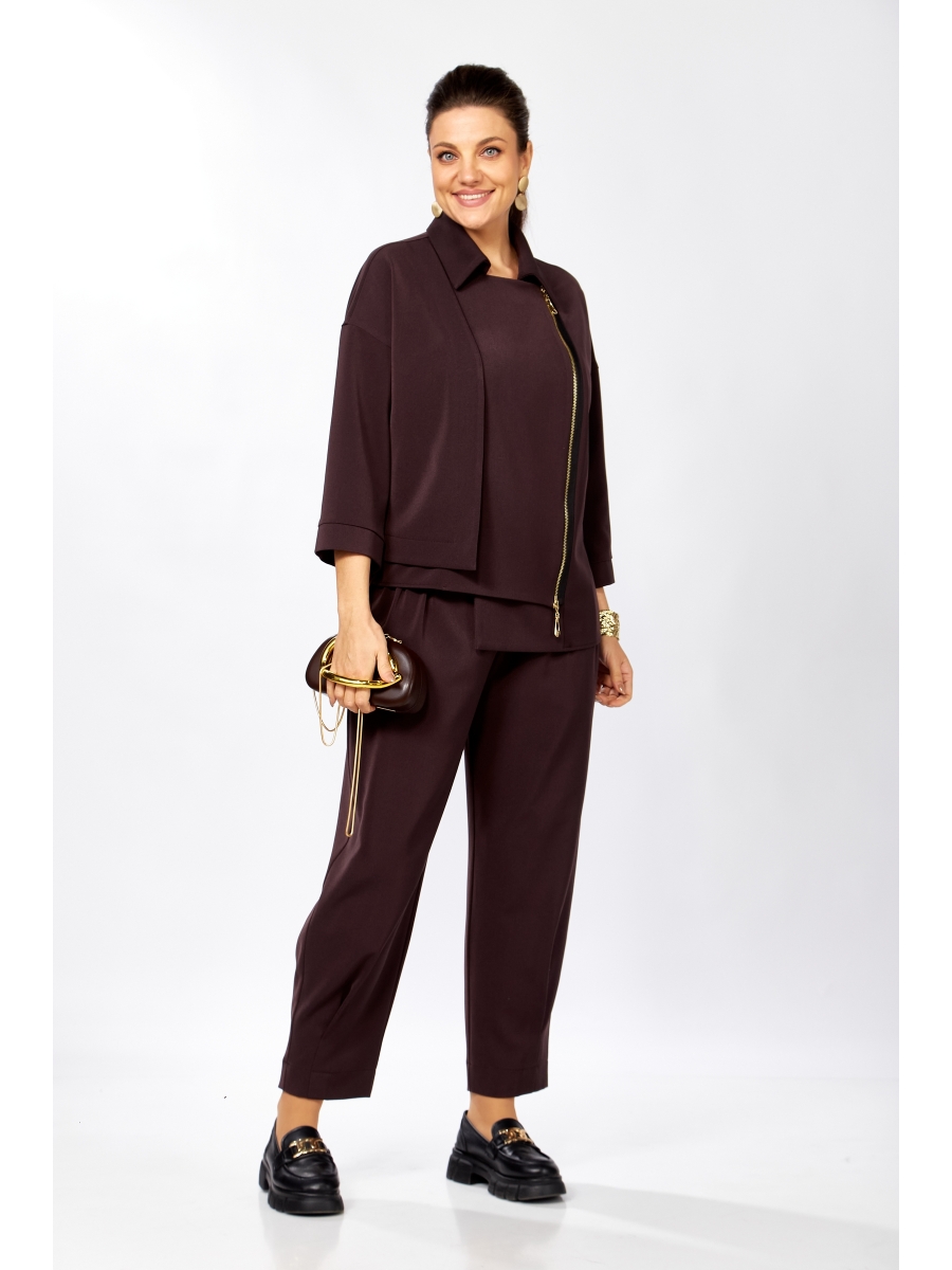 Современный костюм из поливискозной плотной ткани насыщенного сливового оттенка, сочетающий комфорт и элегантность.