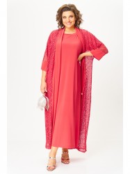 Нарядный и эффектный женский комплект, состоящий из двух предметов: длинного струящегося кардигана из шифона, который надевается поверх платья свободного кроя, с боковым разрезом.