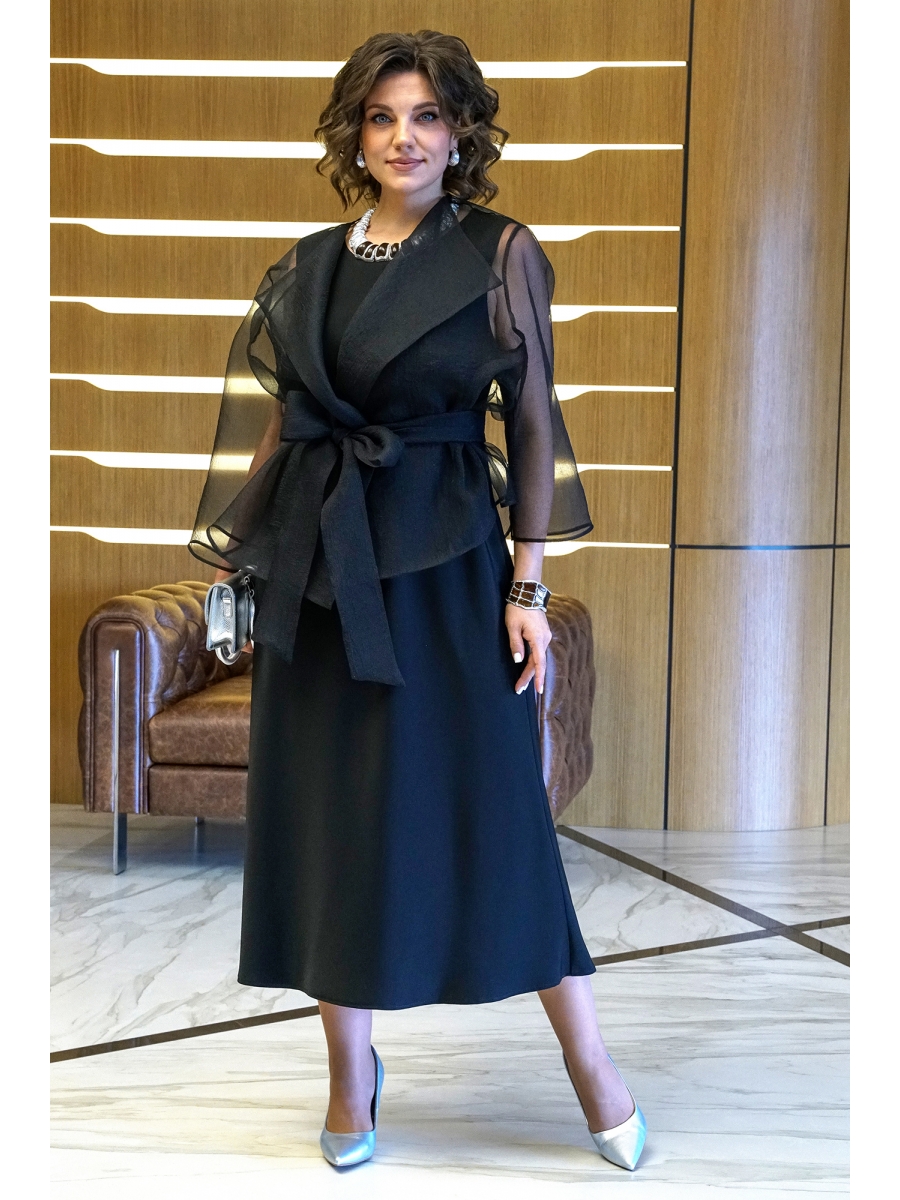 Платье полуприлегающего силуэта вверху книзу типа «рыбки», раскроено по косой. Перед с нагрудными выточками.