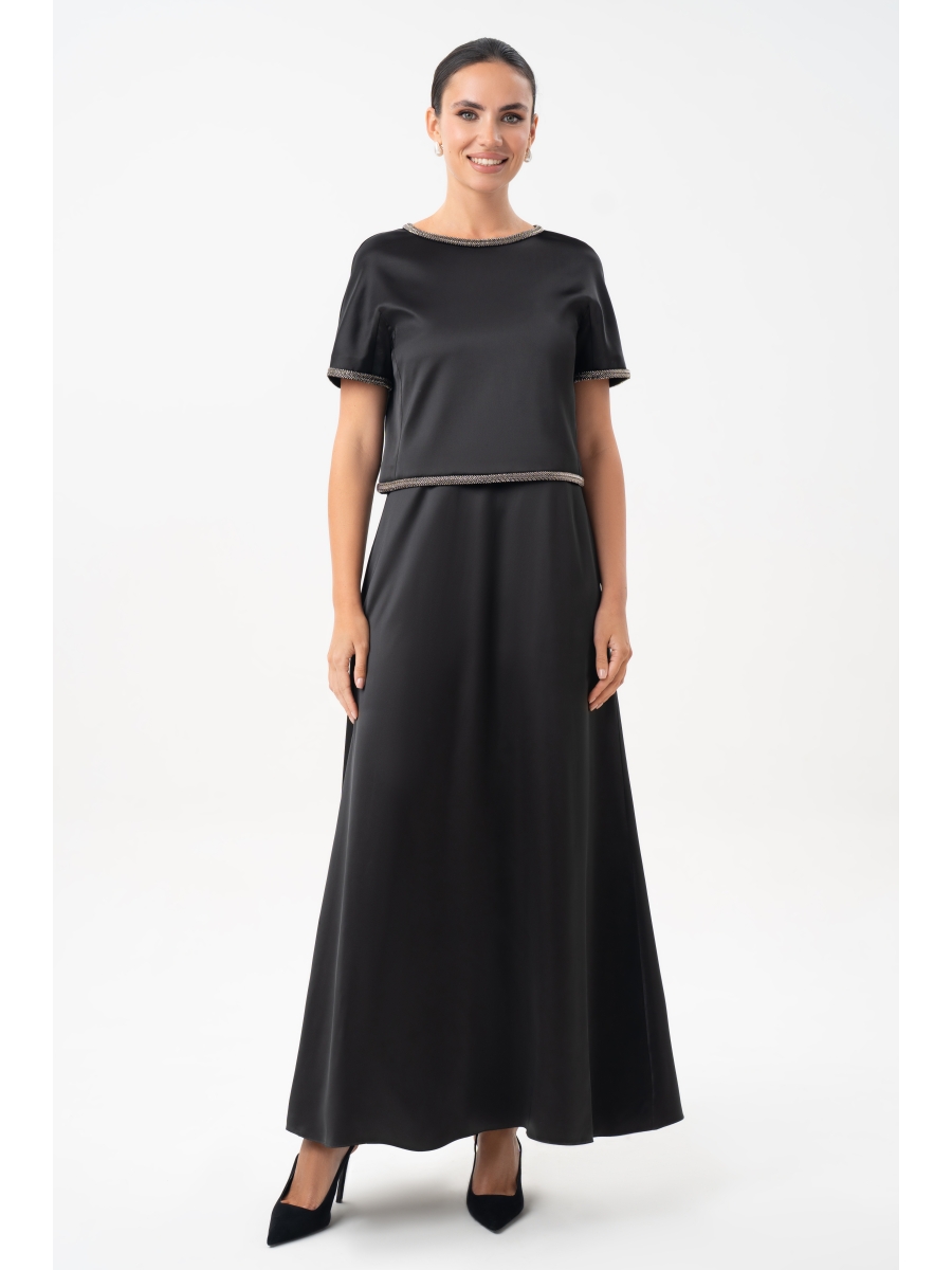 Костюм женский, состоящий из блузона и платья, выполненных из плательной атласной ткани, нарядный.