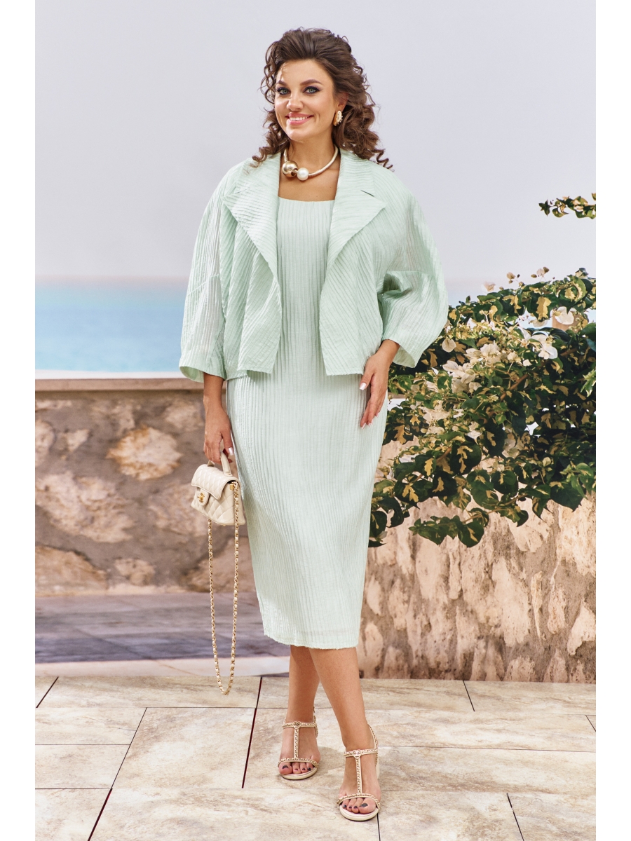 Стильный костюм, состоящий из жакета и платья, сочетает в себе летнюю расслабленность и деловую элегантность. Этот феерический костюм соответствует сразу нескольким трендам!