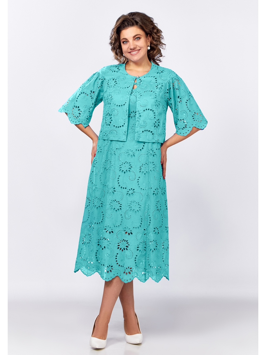 Летний комплект, состоит из платья и жакетика, выполнен из хлопка с вышивкой, на хлопковой подкладке.