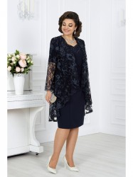 Этот комплект состоит из кружевного кардигана и платья, создавая великолепный и элегантный образ для особых мероприятий. Кружевной кардиган играет важную роль в формировании правильного силуэта. Его утонченный узор и легкая ткань создают эффект легкости и воздушности, и при этом подчеркивают достоинства фигуры. Он мягко облегает тело, придавая образу изящество и стиль. Платье, в свою очередь декорировано кружевом и стразами в области горловины эти детали добавляют платью изысканности и шарма, привлекая внимание к вашей элегантности.
