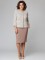 Как выше было сказано, традиционный костюм – это жакет с длинным рукавом и усиленной линией плеч и юбка прямого кроя (карандаш или футляр средней длины). Вместо жакета костюм может дополняться жилеткой, топом или блузой. Жакет может иметь не классический крой, а, например, иметь короткие рукава, воротник-стойку или обрезной воротник. Он может быть с длинной юбкой или короткой, а также разных фасонов: