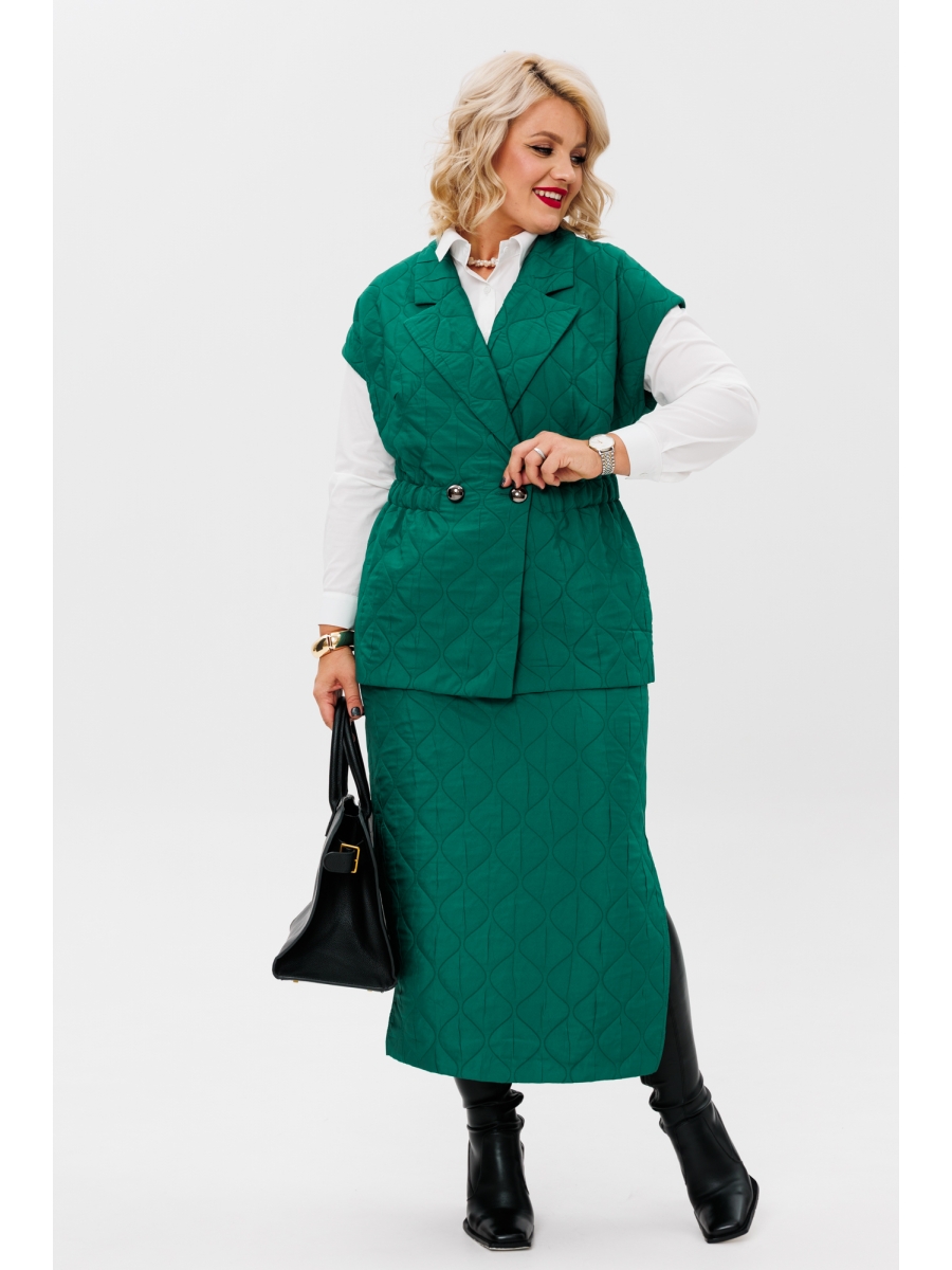 Костюм женский 2-х предметный (жилет, юбка) из стеганной ткани станет отличным дополнением к Вашему гардеробу. Подойдет для повседневной носки (работа, офис, прогулки).