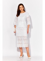 Блузка прямого силуэта с рукавом длинной 3/4. Рукав со спущенной линией плеча. Вырез горловины "лодочка", расширенный, с отделкой кружевной тесьмой. По спинке фигурный вырез акцентирован отделочной "манжетой" Лиф блузки на подкладке.