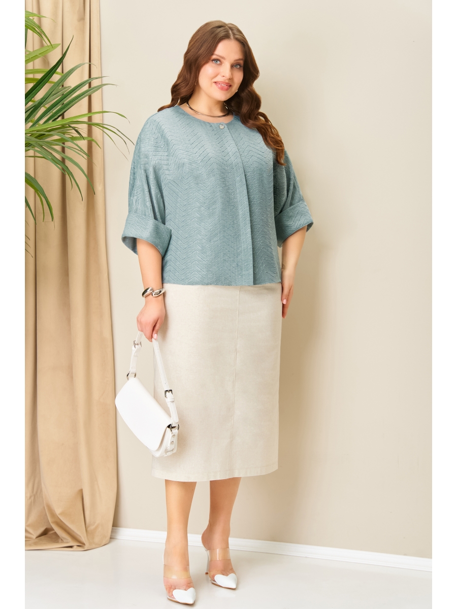 Нарядный жакет из легкого фактурного текстиля, с рукавом на цельнокроеной основе, с потайной застежкой на пуговицы.