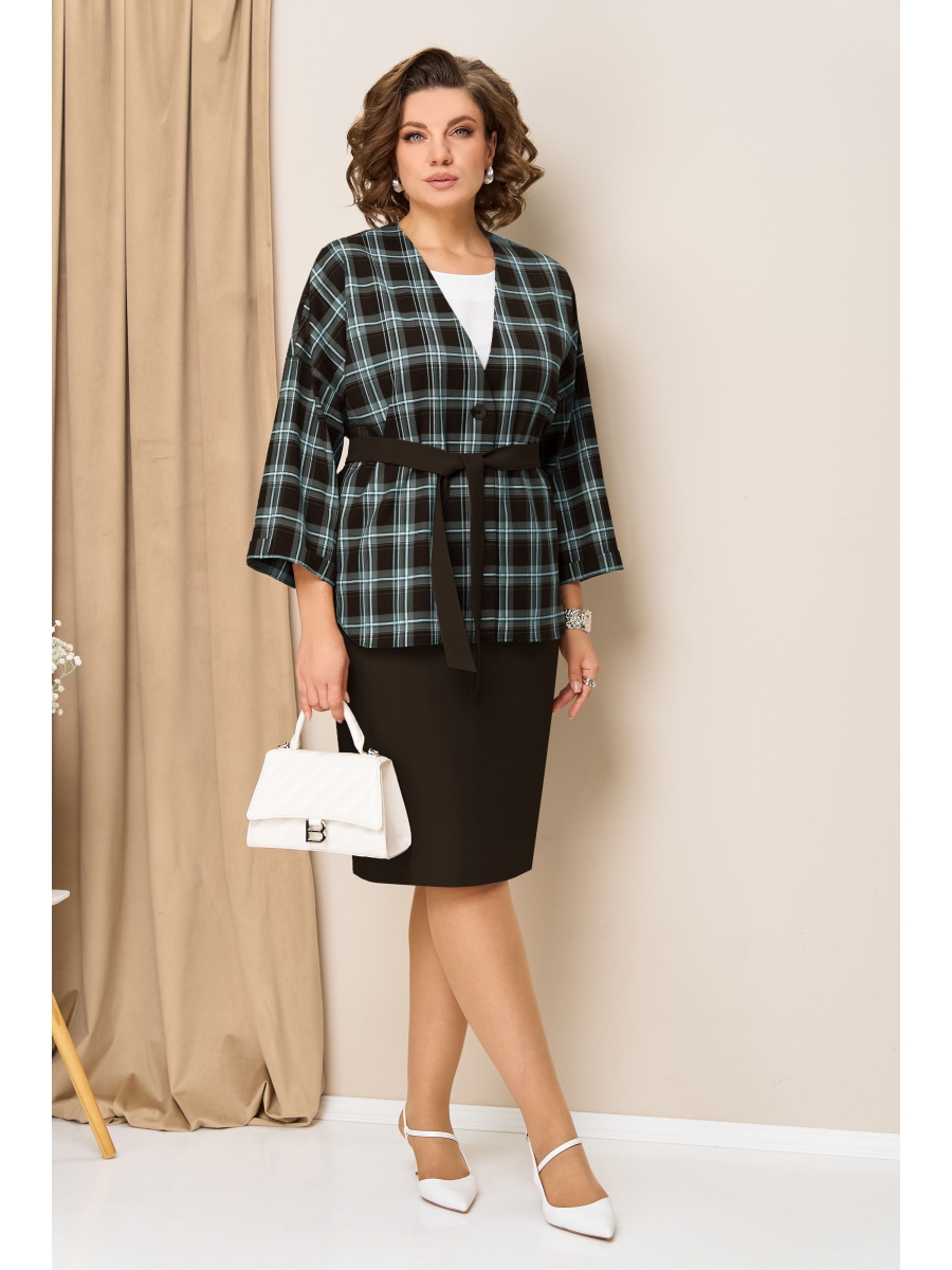 Юбочный костюм артикул: 1433 коричнево-бирюзовый от VOLNA - вид 1