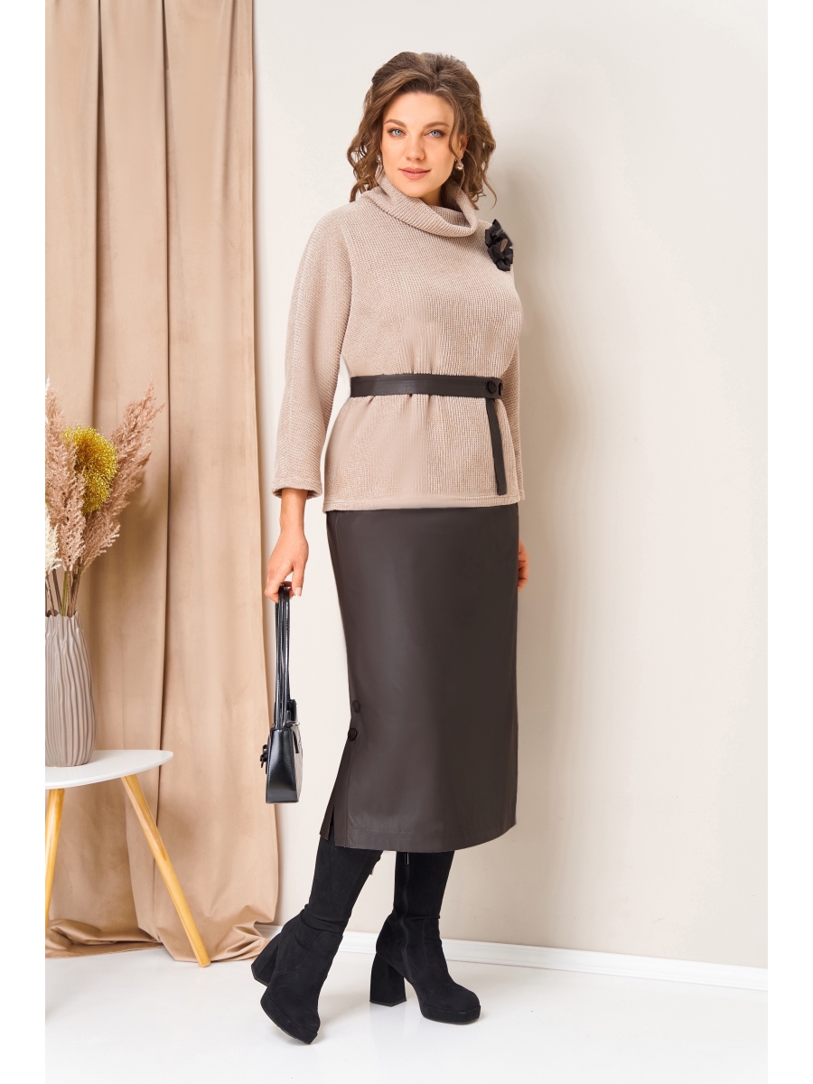 Юбочный костюм VOLNA арт: 1447 бежево-шоколадный купить от белорусских производителей за 7091 руб. — с доставкой по Москве и России : belpodium.ru