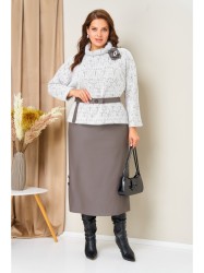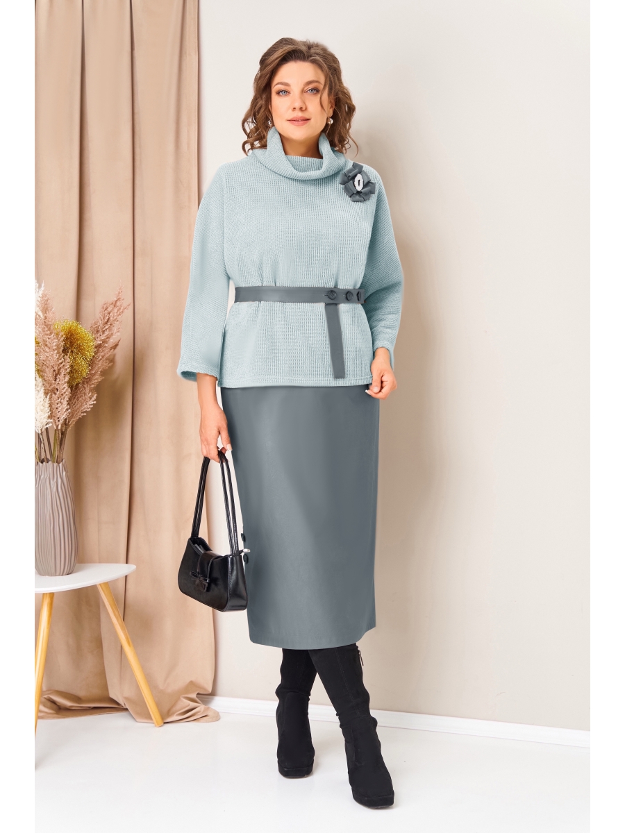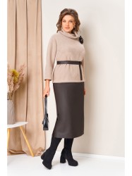 Изысканный комплект из трикотажного джемпера и юбки из искусственной кожи.