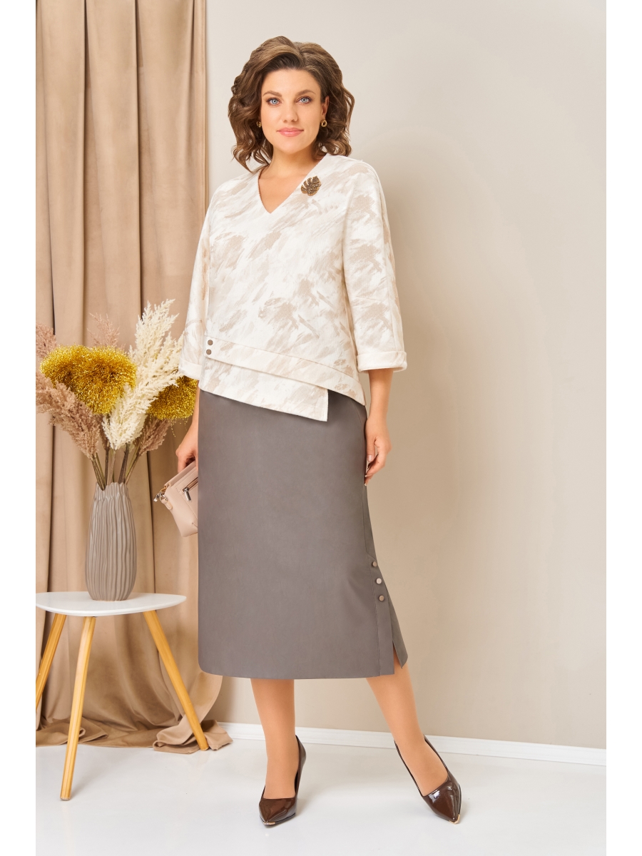 Стильная удлиненная юбка прямого силуэта с разрезами по бокам с застежкой на пуговицы. Для удобства в поясе юбки вставки с резинками.