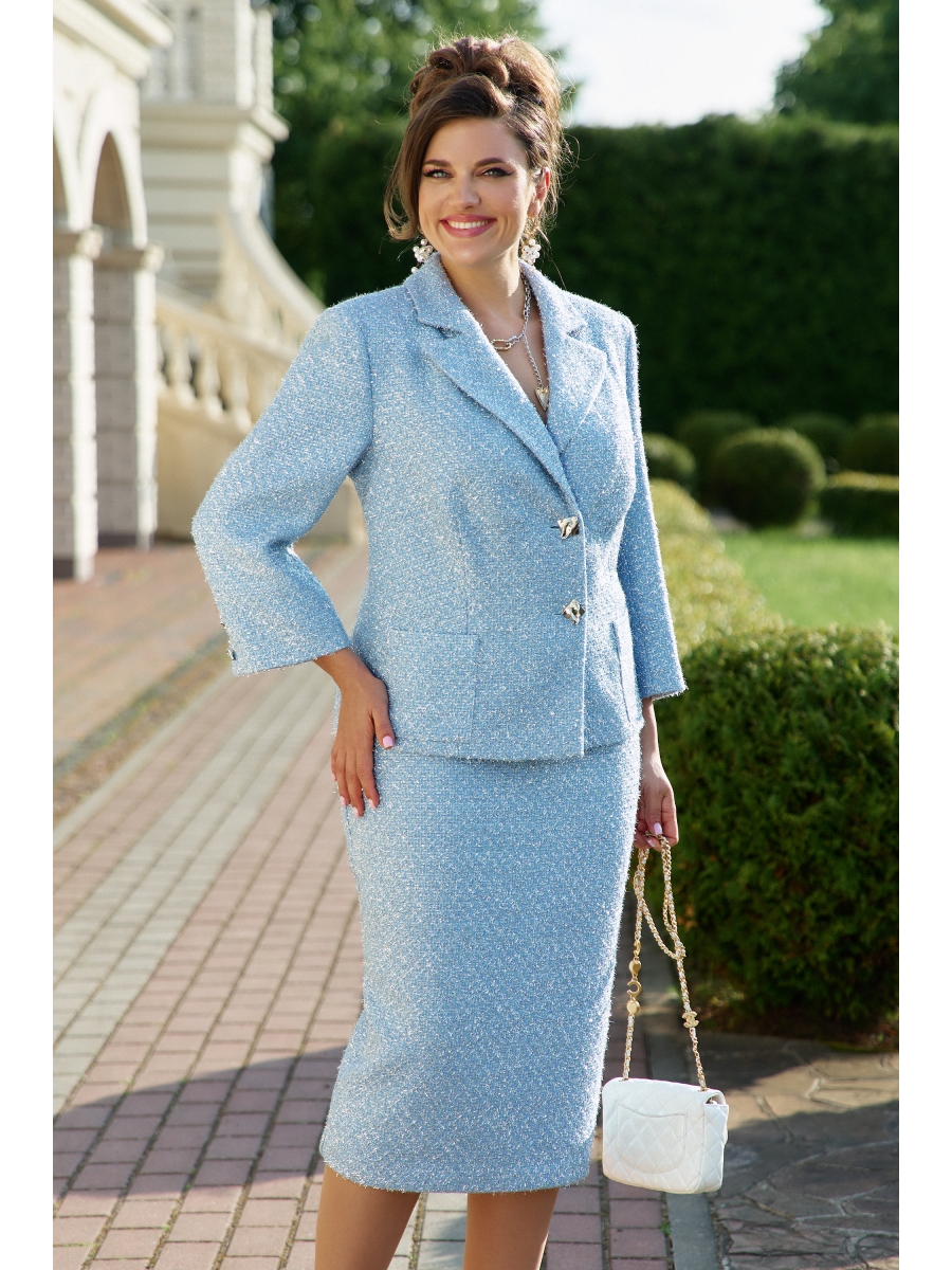 Юбка-карандаш идеально дополняет жакет, обрисовывая стройные линии. Юбка прямого силуэта, заужена к низу, с притачным поясом со вставкой эластичной тесьмы в боках пояса, что обеспечивает удобную посадку на фигуру. В среднем шве юбки застёжка на тесьму молнию, от низа отлетная шлица. Юбка на подкладке.