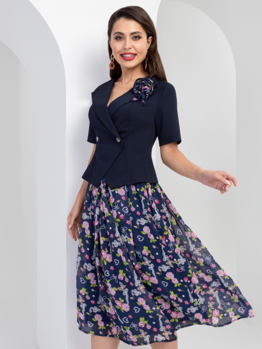 Классный костюм - как всегда на высоте! Эффектный верх с декоративными пуговками украшен роскошной брошкой.
