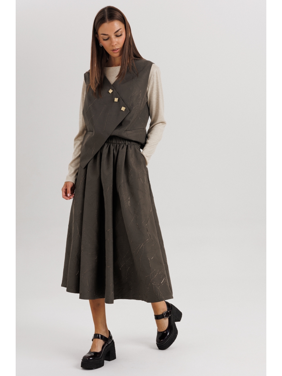 Жилет и юбка: плотная фактурная ткань с лёгким блеском;
