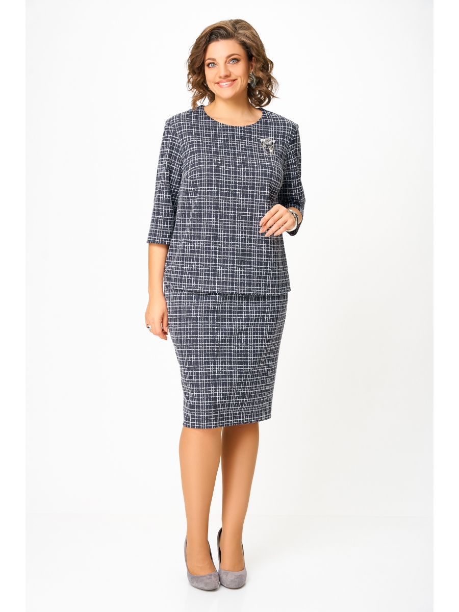 Костюм из трикотажного полотна в мелкий принт клетка, состоит из джемпера и юбки.
