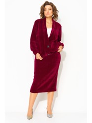 Юбка классической длины за колено, на притачном поясе с резинкой. По спинке по центральному шву расположен разрез. Юбка на трикотажной подкладке.
