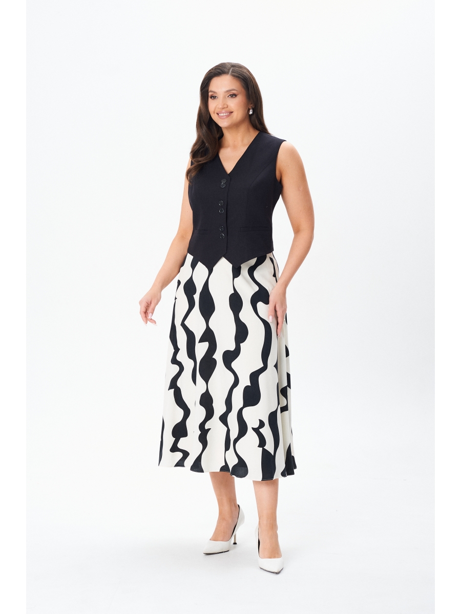 Юбка длиной миди. Силуэт свободный к низу расклешение. Пояс притачной. Карманы в боковых швах. Застёжка сзади на потайную молнию и пуговицу. Юбка на подкладке.