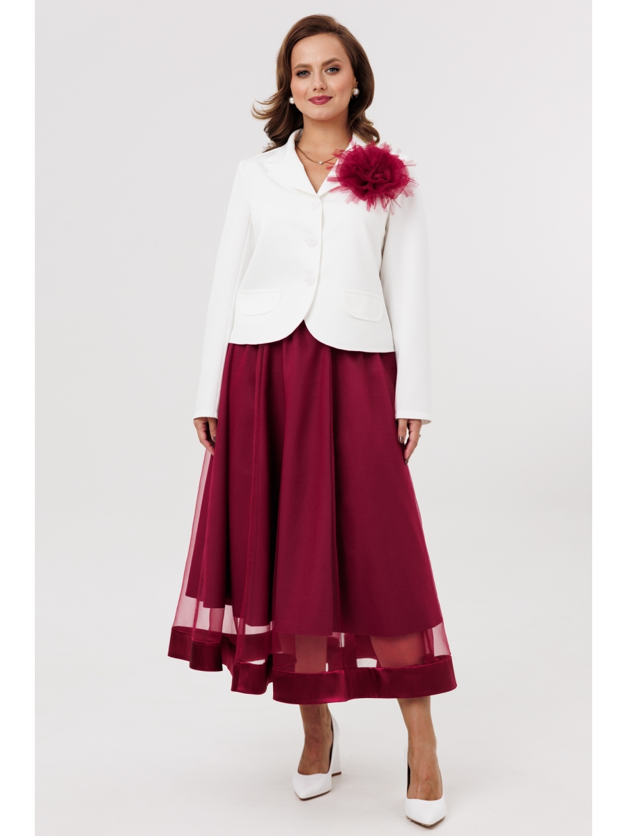 В модели 285 молочно-бордового цвета жакет декорирован съемным цветком бордового цвета (на булавочке).