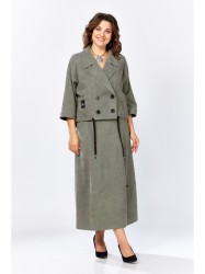 Жакет прямого силуэта со спущенной линией плеча и рубашечным рукавом добавляет характер. На полочке расположен вертикальный рельеф от линии плеча и настрочен накладной карман. Низ жакета обработан тройной обтачкой на которой расположена петля и протянут шнур. Низ рукава с притачной манжетой. Воротник пиджачного типа. Застежка двухбортная на петли и пуговицы.