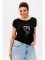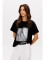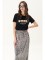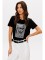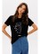 • Простые однотонные модели с округлым вырезом, а также с полосками и яркими трафаретными иллюстративными картинками, коллажами и узорами;