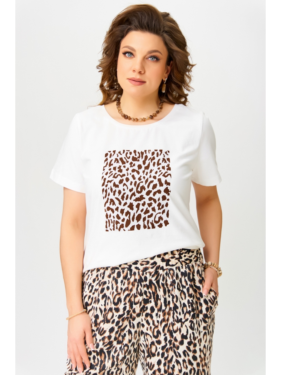 Джемпер "Таина" прилегающего силуэта. По груди вытачка. Горловина обработана планкой. На полочке печать "Леопард". Рукав втачной одношовный. Низ джемпера и рукава обработан распошивалкой.