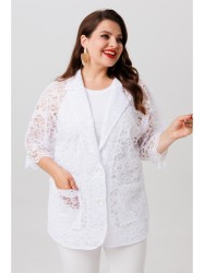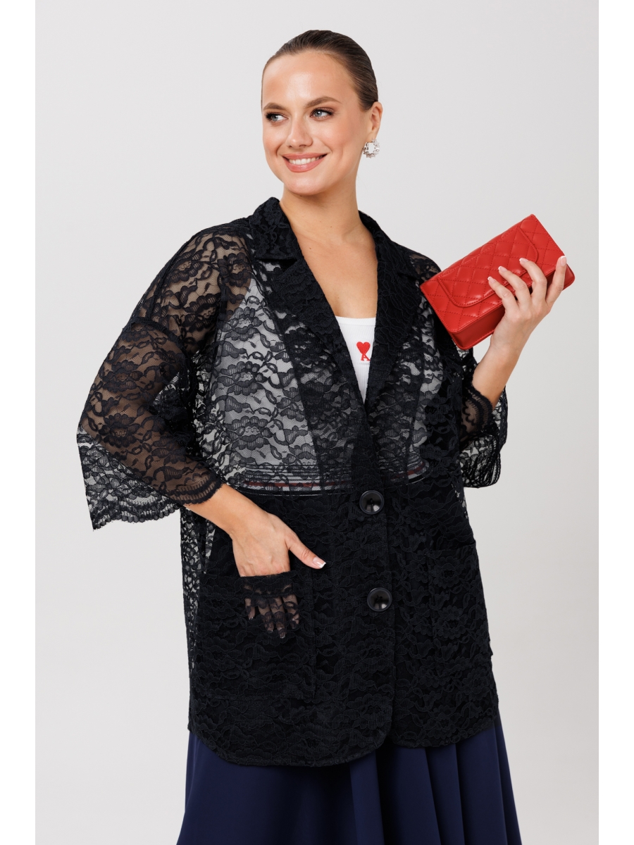 Бренд белорусской женской одежды больших размеров Anastasia представляет элегантный кружевной жакет. Жакет прямого силуэта со спущенным плечом. Рукав 3/4 длины. Застежка на пели и пуговицы, воротник пиджачного типа. По полочке идут накладные карманы, низ фигурный. Стильный жакет оверсайз невероятно удобный и практичный. Отличный вариант в офис, в школу, на работу, на каждый день. Жакет выгодно подчеркнет достоинства фигуры и скроет недостатки, подходит для девушек любых размеров одежды. Комфортный удобный, хорошая посадка и современный дизайн.