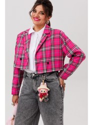 Этот укороченный двубортный жакет, словно созданный для тех, кто ценит баланс между классикой и современностью, идеально подчеркивает силуэт, добавляя образу лёгкую дерзость и безупречный стиль. Выполненный из благородной костюмной ткани в изысканную клетку, он сочетает в себе строгость кроя и игривость актуальных оттенков.