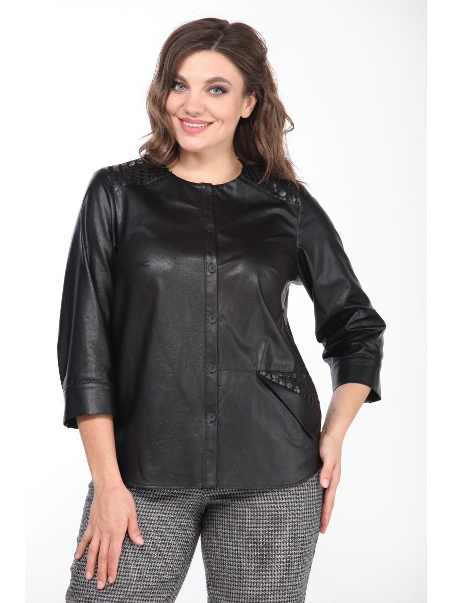 Оформить заказ →Жакет женский для торжественных случаев, из кожи. Жакет прямого силуэта, с круглым вырезом горловины, с нагрудными вытачками и кокеткой по переду. Центральная застежка на 6 петель и пуговиц на отрезной планке. На левой детали переда фигурный карман с отворотом. Жакет с отрезными бочками. Спинка цельная. Рукав втачной, двухшовный, с притачной манжетой, застегивающийся на 2-е петли и пуговицы. По шву притачивания манжета, заложена складка. Разрез рукава в локтевом шве, по которому проложена отделочная строчка на расстоянии 0,5 см от среза. Рукав длиной 3/4. Кокетка переда и подзор кармана выполнены из отделочной ткани, гармонизирующий с основным материалом изделия. Низ жакета фигурный.