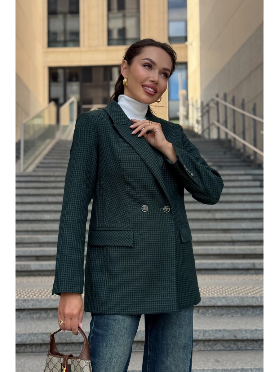 Жакет URS в принт «гусиная лапка» — это элегантный выбор для женщин, которые ценят классику и современный стиль. Легендарный узор в сочетании с тёмно-зелёным оттенком делает модель универсальной: она идеально подходит как для офиса, так и для повседневных образов. Жакет женский, полуприлегающего силуэта, выполнен из костюмной ткани, на подкладке, с двубортной застежкой на 2 петли и пуговицы (размер и цвет фурнитуры может незначительно отличаться от фото), для повседневной носки. Перед и спинка с отрезным бочком. Перед в нижних частях с прорезными карманами с клапаном и обтачками, с талиевыми вытачками, идущими от карманов вверх. Верхняя левая часть переда с функциональным карманом с листочкой. Спинка с рельефными и средним швами. Рукава втачные, двухшовные, длинные. . В локтевом шве по низу обработана отлетная шлица с 4-мя петлями и пуговицами. Горловина оформлена воротником пиджачного типа. Концы лацканов закругленной формы. Жакет с плечевыми накладками.
