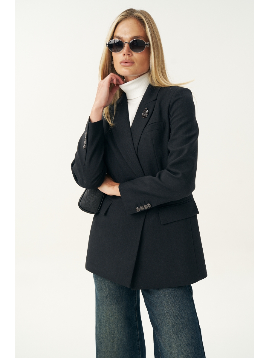 Жакет женский шерстяной от бренда URS – это выбор для женщин, которые ценят премиум одежду, безупречное качество и элегантный стиль. Этот тёмно-серый приталенный жакет создан для того, чтобы подчеркнуть индивидуальность, изысканность и статус своей обладательницы. Он органично вписывается в гардероб современной женщины и станет базовой вещью для делового и повседневного образа. Жакет женский, полуприлегающего силуэта, выполнен из костюмной ткани, на подкладке, с двубортной застежкой на 2 петли и пуговицы (размер и цвет фурнитуры может незначительно отличаться от фото), для повседневной носки. Перед и спинка с отрезным бочком. Перед в нижних частях с прорезными карманами с клапаном и обтачками, с талиевыми вытачками, идущими от карманов вверх. Верхняя левая часть переда с функциональным карманом с листочкой. Спинка с рельефными и средним швами. Рукава втачные, двухшовные, длинные. . В локтевом шве по низу обработана отлетная шлица с 4-мя петлями и пуговицами. Горловина оформлена воротником пиджачного типа. Концы лацканов закругленной формы. Жакет с плечевыми накладками.