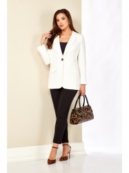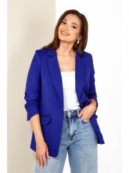 Эффектный жакет из текстильной ткани станет отличным дополнением вашего гардероба. Жакет женский удлиненный, полуприлегающего силуэта с центральной бортовой застежкой на пуговицу, на подкладке. Перед жакета с боковыми рельефными швами от проймы до низа изделия. Воротник отложной пиджачного типа. Перед с прорезными карманами и клапаном. Рукав длинный, втачной, двух шовный. По низу рукава шлица и потайная застежка-обманка на 3 пуговицы. Спинка с боковыми рельефными швами от линии проймы до линии низа и со средним швом.