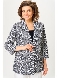Жакет женский удлиненный, из текстильной ткани, на подкладке, полуприлегающего силуэта с центральной бортовой застежкой на пуговицы до линии перегиба лацкана. Спереди рельефные швы от плечевого шва, отрезной бочок и карман с клапаном. Спинка с рельефами от плечевого шва. Рукав втачной, двухшовный. Воротник пиджачного типа.