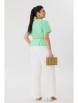 Особенностью модели является притачная баска со встречными складками, придающая образу утонченность и женственность. V-образный вырез горловины добавляет нотку изысканности, а центральная застежка на пуговицы обеспечивает удобство и стиль. Жакет оснащен втачным коротким рукавом. Спинка украшена рельефами и имеет средний шов, что создает гармоничный силуэт.