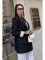 • Интересный декор. Можно примерить женский пиджак большого размера в оригинальном стиле, в котором декор выполняет не только стилистическую функцию. Контрастная отделка планки застежки делает фигуру стройнее, широкий отложной воротник акцентирует внимание на области декольте, а необычные пуговицы послужат еще одним способом создать оригинальный образ.