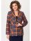 • Выбирайте женский пиджак большого размера длиной до середины бедер или ниже. Короткий жакет подчеркивает область талию и акцентирует внимание на лишних килограммах на животе, поэтому пиджак должен быть длиннее.