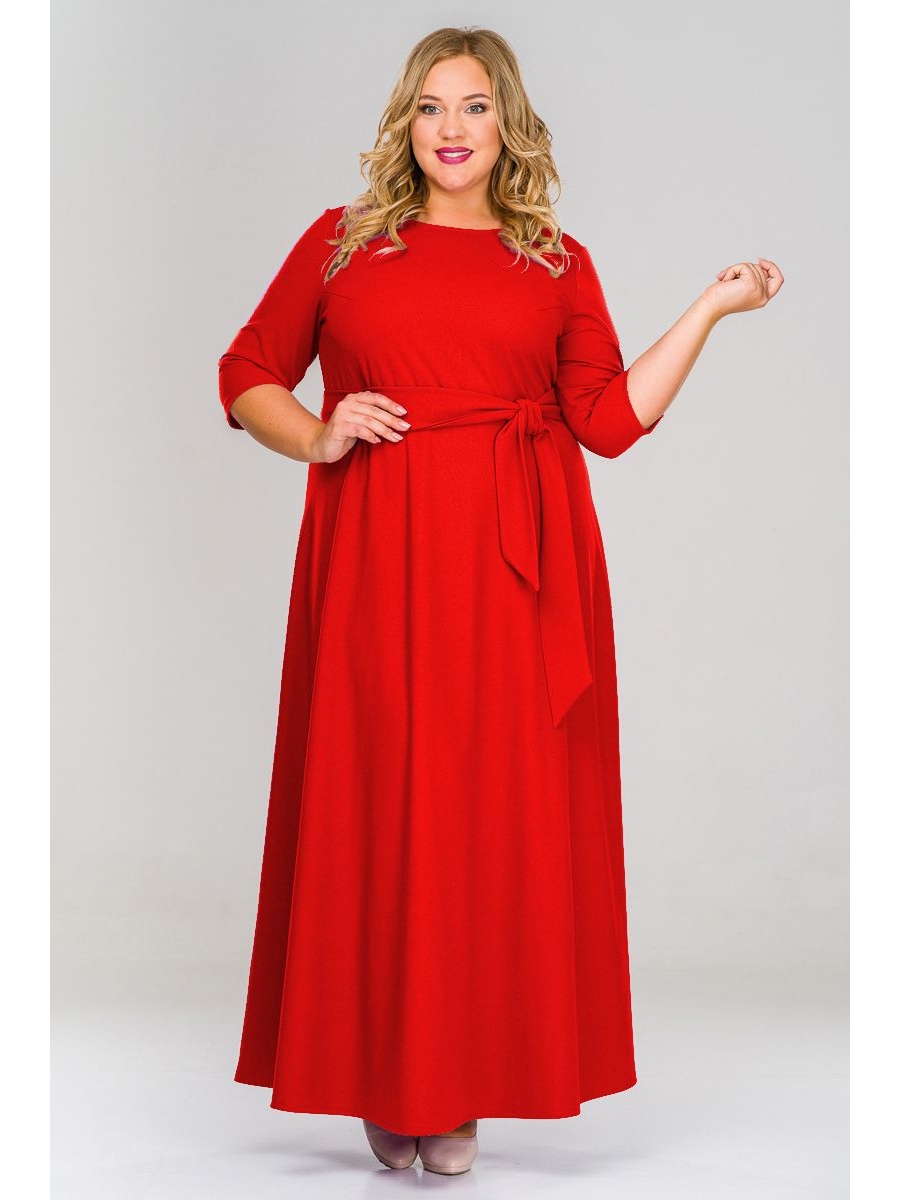 Длинное локоничное платье из крепа, пояс в цвет основной ткани
