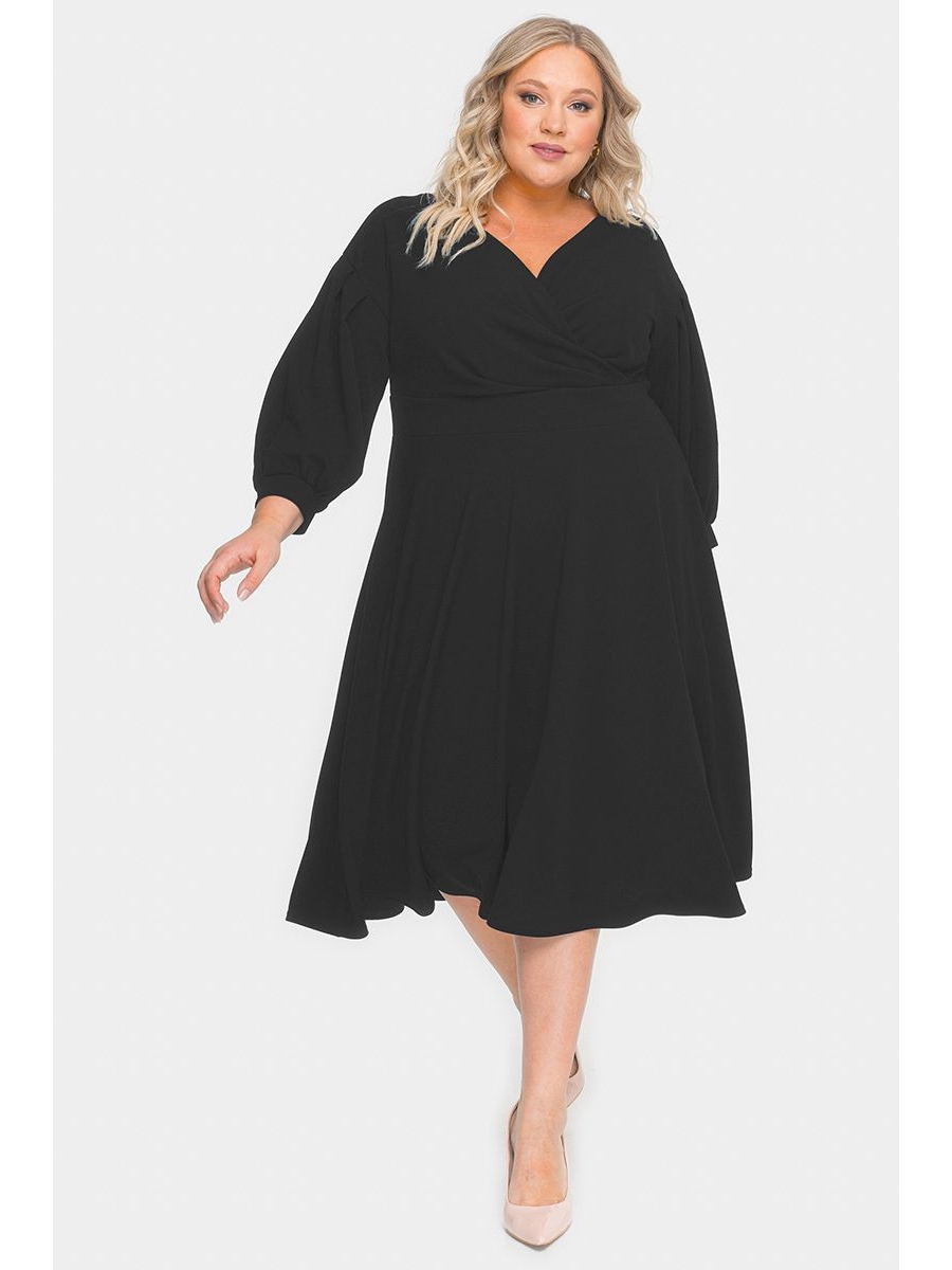 Изысканное платье прилегающего силуэта Верхняя часть переда отрезная с романтичной драпировкой. Двойной втачной пояс поддерживает талию. Нижняя часть расклешенная. Линия плеча занижена. Рукав "фонарик" спущенный, объемный, заканчивается манжетом. Элегантность этой модели придает утонченное сочетание драпировки и безупречность кроя.
