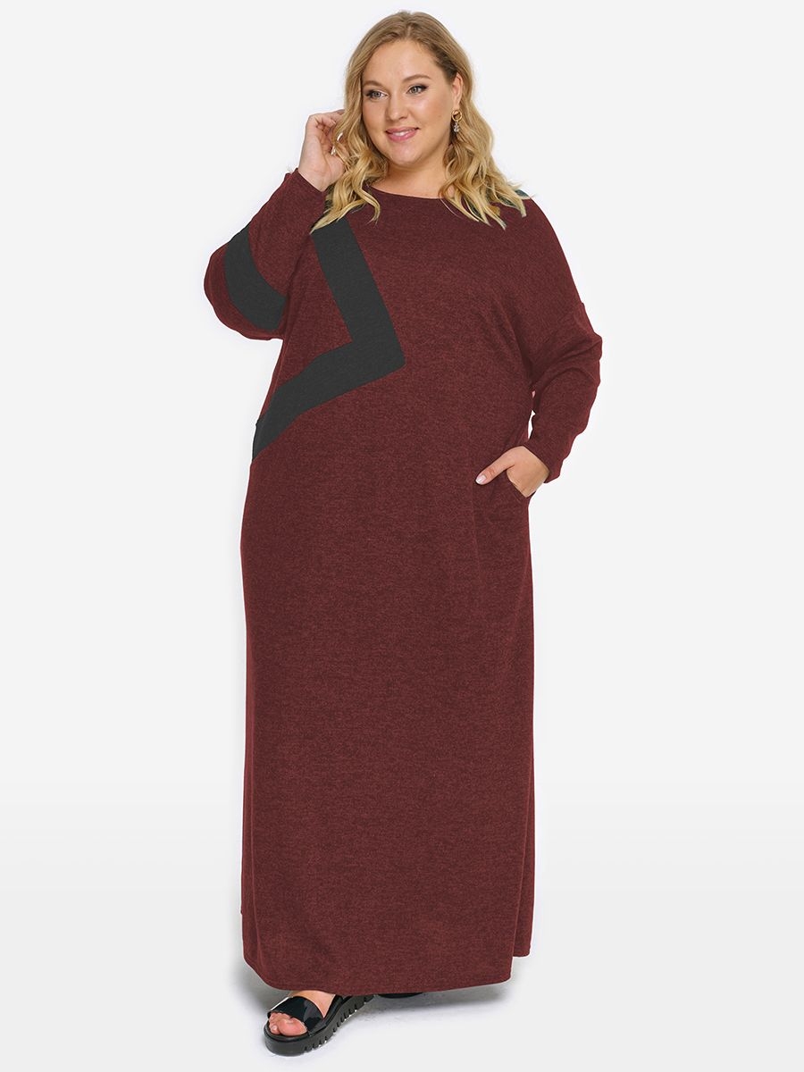 • Название: Платье из джерси-меланж с асимметричной отделкой, бордовое
