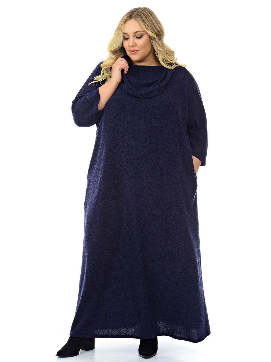 Платье длинное, свободного силуэта, из искусственной ангоры. По переду вставка в форме вытянутого треугольника из основной ткани. По горловине объемный воротник - "хомут".