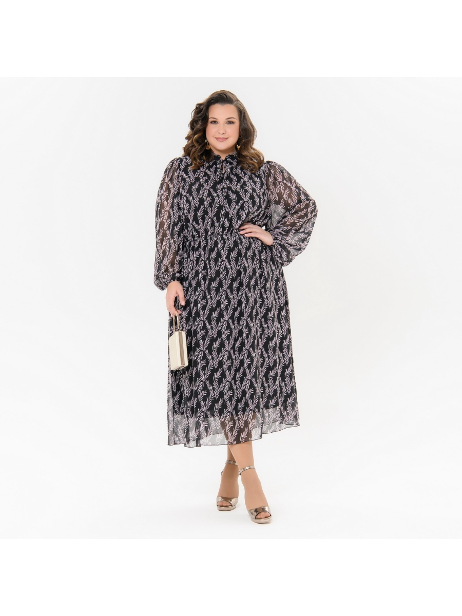 Изысканное платье из шифона с длиной миди. По горловине воротник стоечка. По центру переда стоечка завязывается на шнурочки из основной ткани.