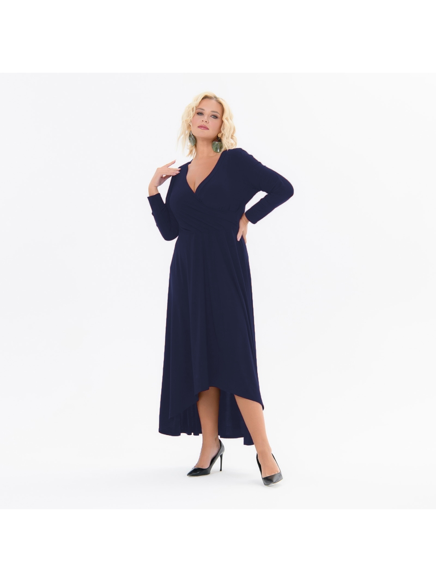• Название: Платье приталенное, с асимметричным низом, лиф с запАхом, темно-синее