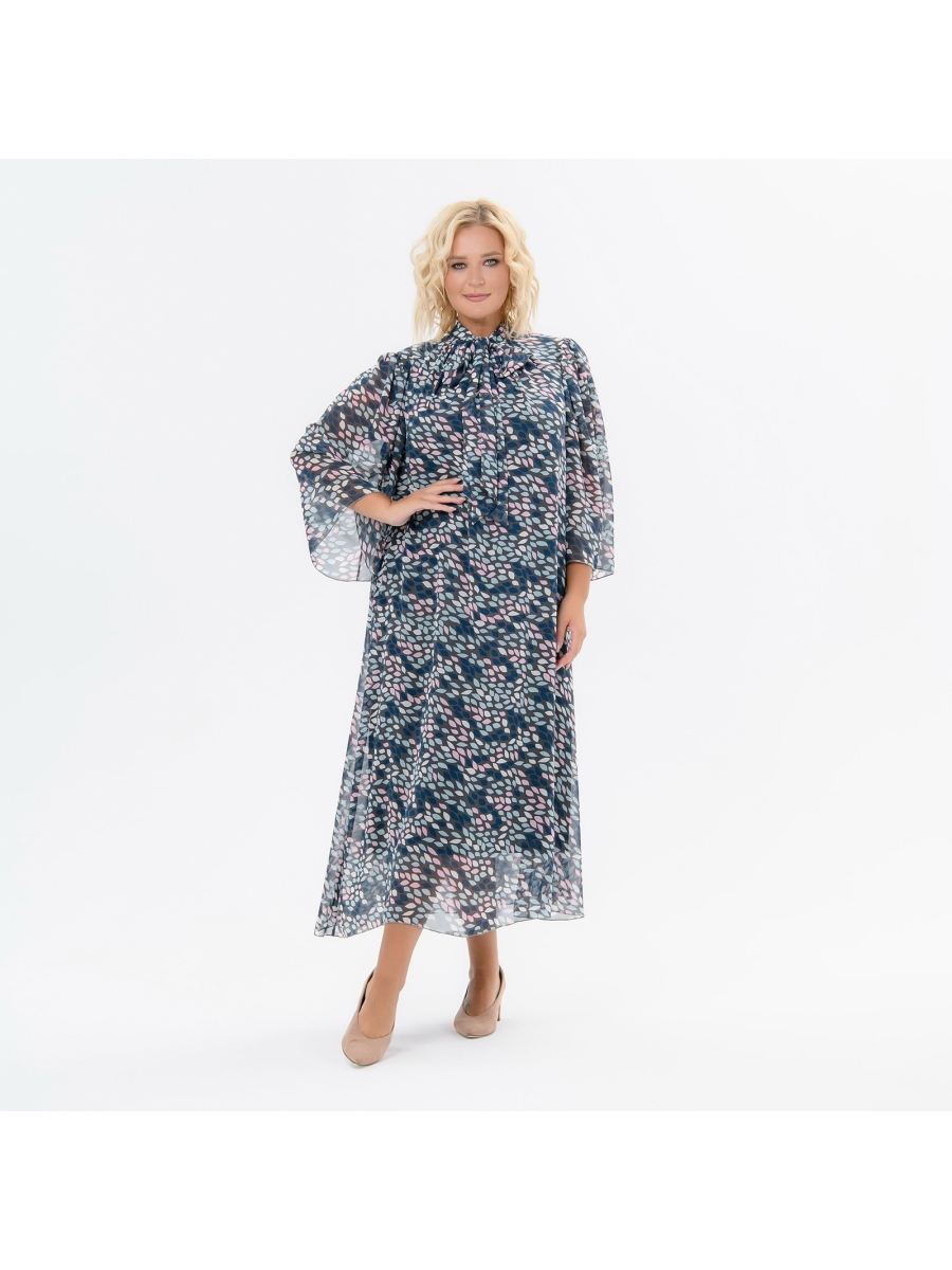 Изысканное платье А-силуэта.из шифона длиной миди. По горловине воротник "аскот", завязывающийся в красивый бант.