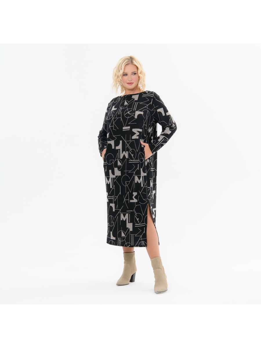 • Название: Платье миди с карманами и разрезом, силуэт "кокон", ангора, принт "символы"