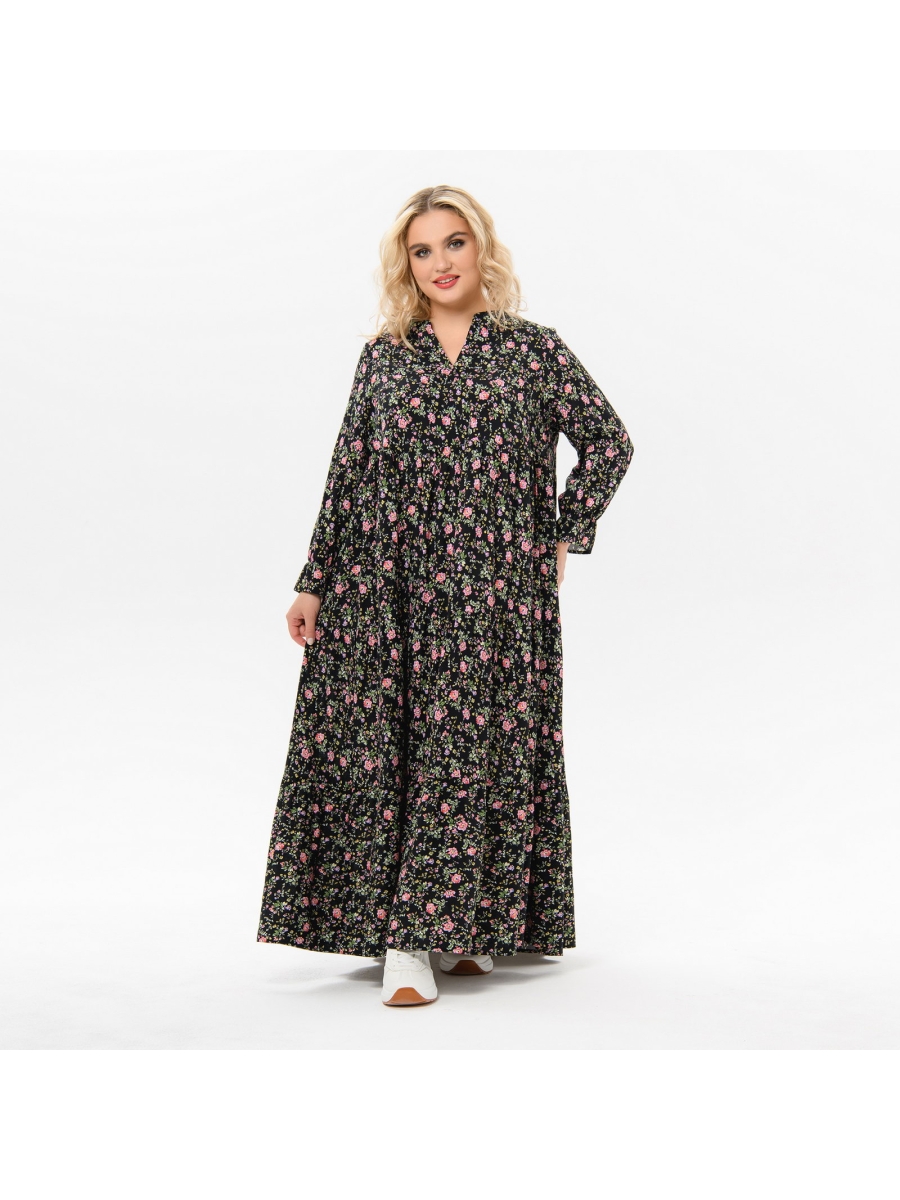 Роскошное, каскадное, длинное платье с тунисским вырезом горловины, из штапеля. Верхняя часть отрезная.