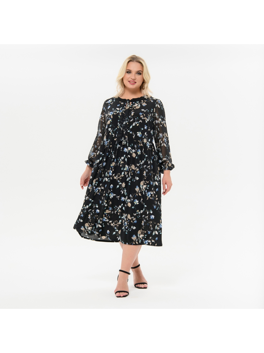 • Название: Платье комбинированное, основа "масло", рукава шифон-компаньон, черное с бирюзовыми цветами