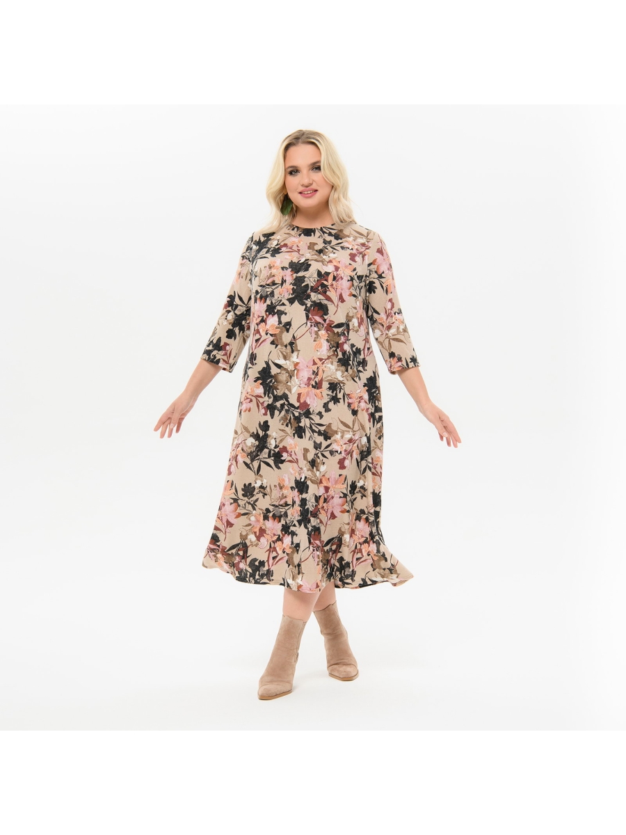 Платье полуприлегающего силуэта, немного расширенное по бедрам, из джерси средней плотности, имитирующего ангору.