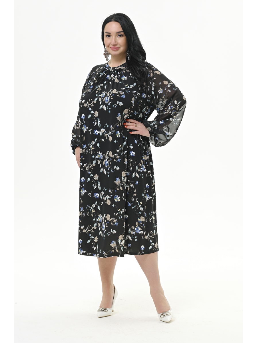 Основа платья, планочка обработки горловины и манжеты выполнены из струящегося трикотажа - "масло",