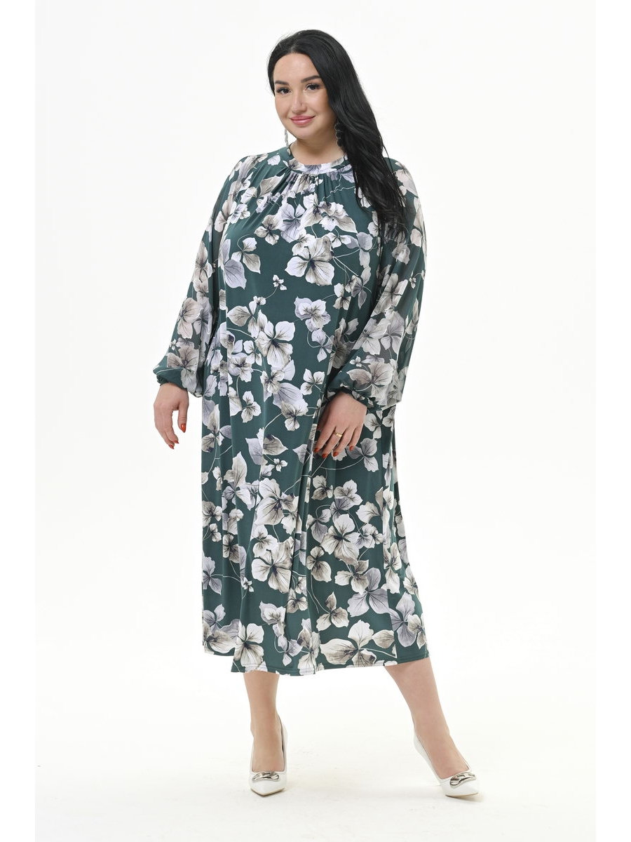 Основа платья, планочка обработки горловины и манжеты выполнены из струящегося трикотажа - "масло",